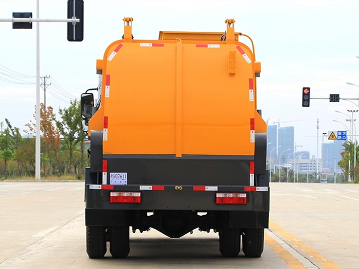 Q235國(guó)標(biāo)碳鋼制作罐體,罐體厚度5mm,封頭5mm厚度。罐體容積8-10方,罐體帶舉升功能,后門液壓**開啟關(guān)閉,帶液壓鎖緊功能,拉桿提升機(jī)聯(lián)動(dòng)頂蓋**設(shè)計(jì),收集時(shí)滴水不漏。提升架可掛 120L/240L 標(biāo)準(zhǔn)塑料垃圾桶。