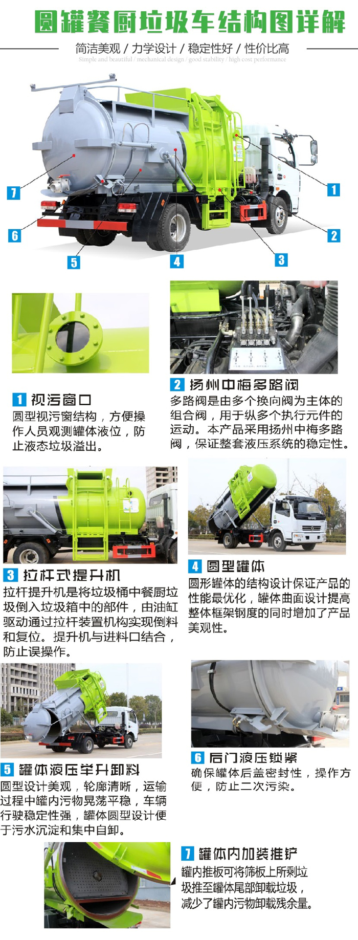 東風(fēng)大多利卡7方餐廚垃圾車上裝配置: