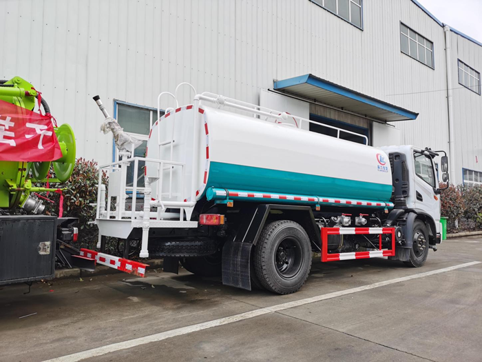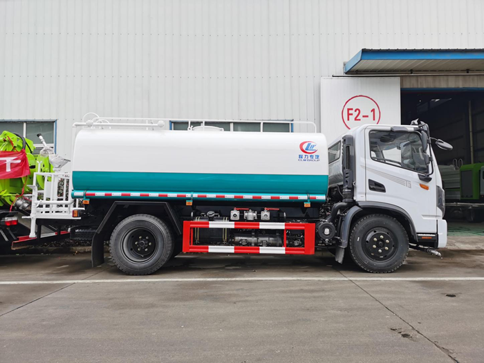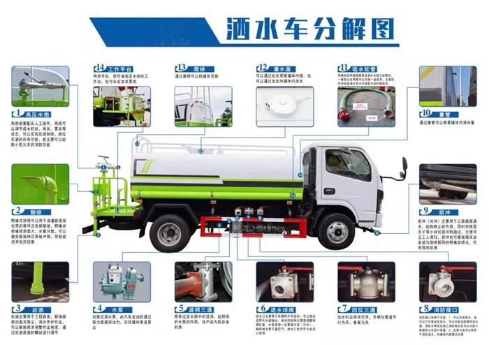 上裝主要配置:采用大流量水泵40-50,基本灑水功能前沖、后灑、側(cè)噴、工作平臺(tái)帶高炮(可調(diào)節(jié)至霧狀、直柱狀)、可泵進(jìn)泵出、罐體兩側(cè)炮筒、帶兩根抽水軟管,上裝標(biāo)配,罐體自動(dòng)焊,實(shí)際容積9方。