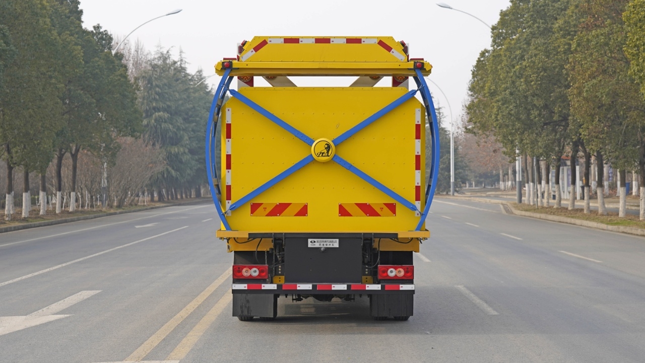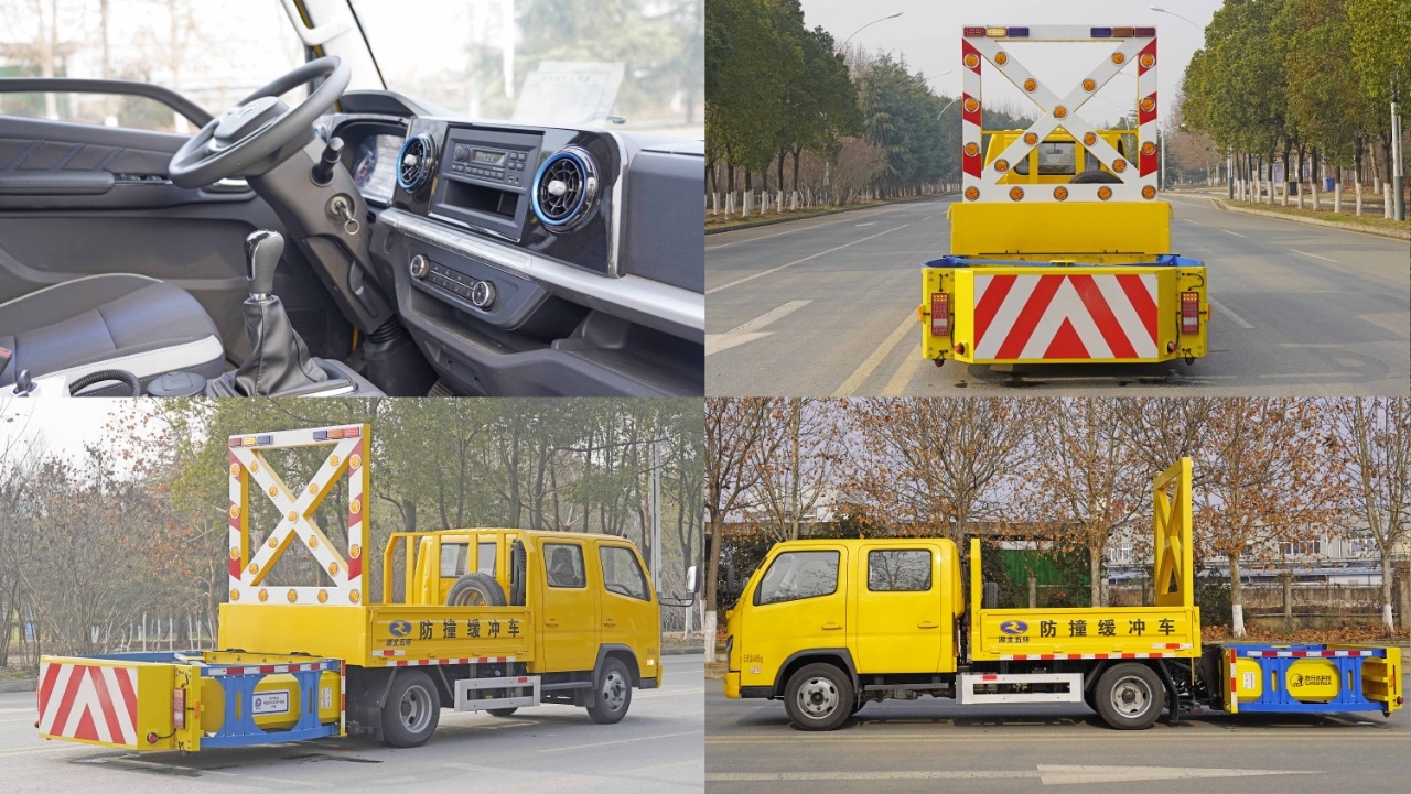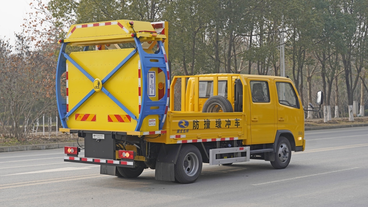 上裝配置:采用Q235國標優(yōu)質板材制作,貨箱尺寸:2580mm長*1950mm寬*450mm高,箱體后部防撞緩沖模塊包采用國際知名技術產(chǎn)品70K防撞緩沖模塊,防撞緩沖吸能模塊主要由車載防撞緩沖墊和導向標志架組成,充當施工作業(yè)車輛后方的緩沖衛(wèi)士。如若發(fā)生追尾事故,能夠在肇事車輛和前方施工作業(yè)區(qū)域之間構建一個緩沖區(qū)域,通過機具結構變形吸收撞擊的能量,最大限度地降低被保護人員及設備遭到碰撞的幾率。