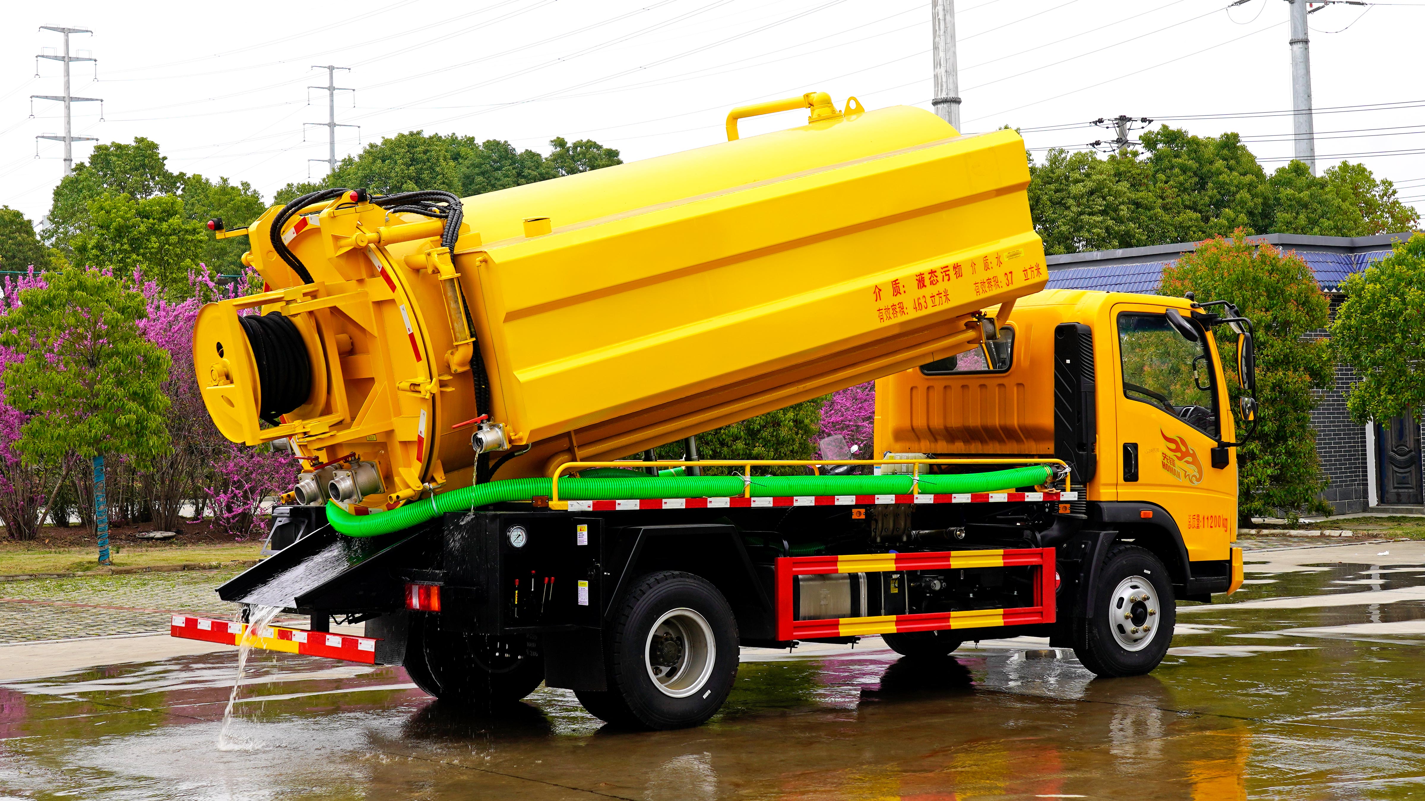上裝配置:分體式外觀,罐體采用Q235碳鋼板制作,帶有視污窗,帶液壓舉升,后蓋為液壓開啟,吸污泵采用億豐SK-12噸真空吸污泵,帶8米吸污管一根,清水箱和污水箱互通,清水箱帶消防接頭,高壓泵170L帶汽吹水,配60米直徑19高壓管,配10個(gè)不同型號(hào)噴頭,嚴(yán)格按照公告制作(其余標(biāo)配)。
