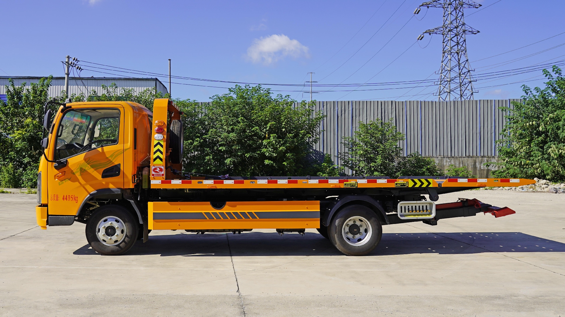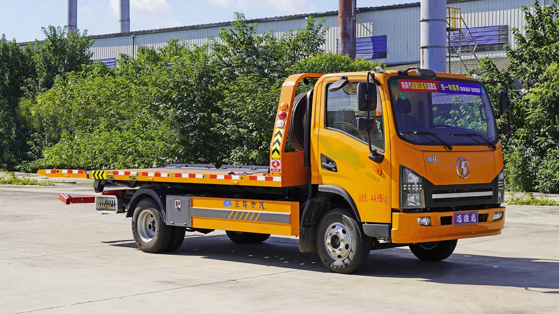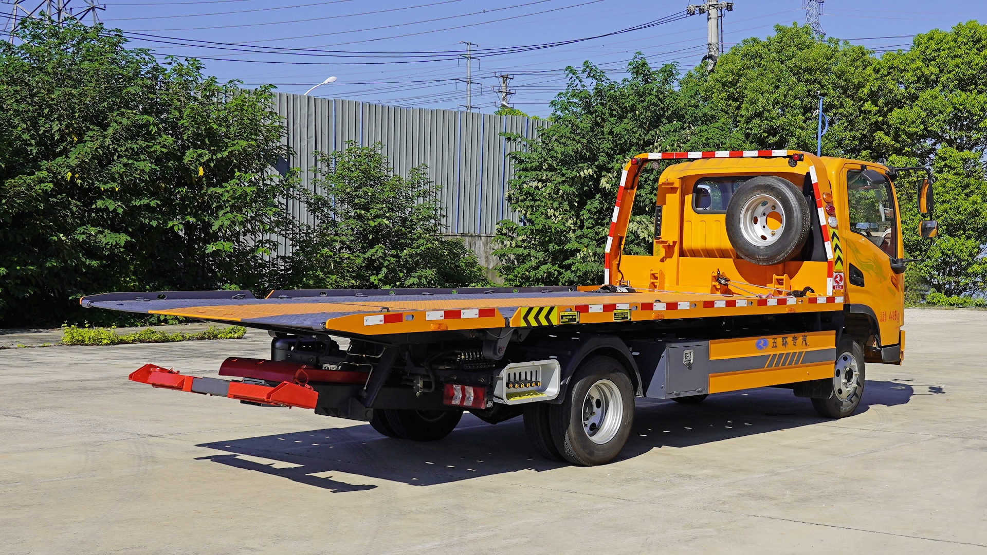 上裝配置:一體翻轉板,5MM花紋板沖孔,豎寸(兩邊),主油缸:105#外徑,舉伸缸:95#外徑,4噸卷揚,板長:5.6米,翻轉1.4米,通心軸,8MM厚滑槽,14個厚薄邊框打孔,雙通副梁,滑槽前端用錳鋼加強,后托臂成一套,后托臂掛主梁,七字叉一對,抱胎桶一對,1個工具箱,擋胎2個,4根綁帶。拋丸,噴粉,烤漆。
