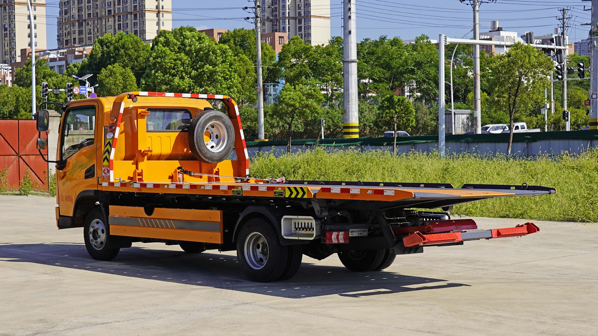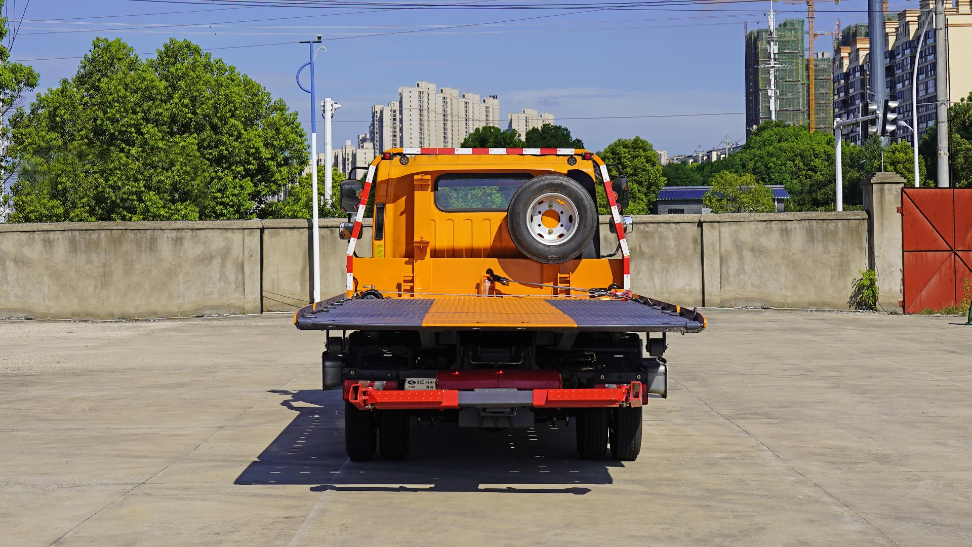 底盤其他配置:扭矩450牛米法士特6檔變速箱帶同步器帶原廠取力器(兩年12萬公里換油),原廠200mm雙層直通大梁(清障車專用承載型),漢德6噸寬后橋(軸頭終身免維護,兩年12萬公里換油),后橋速比可選4.875和4.33(大馬力,小速比,跑得快,油耗低),漢德3噸前橋(終身免維護)3/5+2加厚板簧(進口板簧,單片厚度10mm,保證承載力兼顧舒適度),3600軸距(重載穩(wěn),不翹頭),遠程電子油門(操作高效,實時控制拖車速度),7.00R16鋼絲胎,氣喇叭、電動門窗、遙控鑰匙、中控鎖、原廠空調、動力轉向、離合助力,ABS、氣剎、斷氣剎、定速巡航,排氣制動,可調大燈,剎車自動調整臂,遠程電子油門。