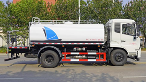 我公司生產(chǎn)灑水車,標配前沖、后灑、側(cè)噴、后置式工作平臺、平臺上有高壓水炮(可360°旋轉(zhuǎn),可調(diào)成柱狀最大射程35米,也可調(diào)成霧狀最大射程15米,可調(diào)成:直沖狀、大雨、中雨、小雨、毛毛雨),配備優(yōu)質(zhì)大功率專用灑水泵,取力器,雜物過濾網(wǎng),國標通用65型消防接口(可通過消防栓加水)、1套自流球閥系統(tǒng)(可自吸自排,可從河里或池塘抽水到罐體,最大吸程7米),2根引水鋼絲膠管。水泵、取力器、球閥、濾網(wǎng)均為國家標準產(chǎn)品,主管道加粗,法蘭墊、法蘭盤加厚,萬向前沖,大通徑球閥,具有性能優(yōu)良,工作可靠、效率高、流量大、維修方便等特點。