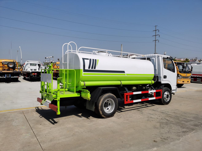 改裝配置:罐體用優(yōu)質(zhì)碳鋼材料,罐內(nèi)隔板具有防波作用,以減低汽車行駛時罐體液體的沖擊。水罐實(shí)際容積5.1方,整車帶一個專用灑水泵(垂直最大吸程6米),灑水寬度14米,射程28米。多功能灑水車配備2個前沖(噴)(能將路面泥巴、塵土、垃圾沖干凈);2個后灑(能均勻地將水灑在路面,一次灑水寬度14米)、2個側(cè)噴(花灑)(能均勻地將路旁綠化帶澆灌)、帶1個后工作平臺,平臺上安裝1個綠化灑水高炮(灑水炮可全方位旋轉(zhuǎn),可連續(xù)調(diào)成直沖狀、大雨、小雨、毛毛雨,霧狀可調(diào)節(jié)沖洗高大樹木),引水時間<5min,流量90m3/h。帶1個消防接頭,帶1個自流閥,1個過濾裝置、人性化爬梯及側(cè)防護(hù)欄,安裝灑水音樂喇叭。