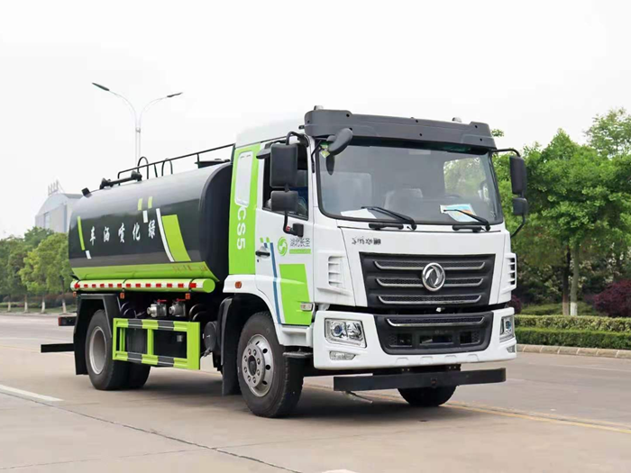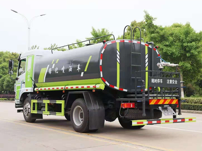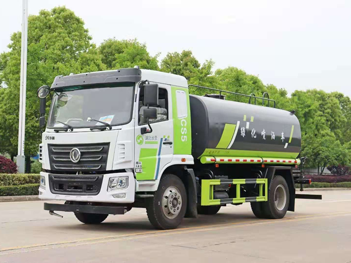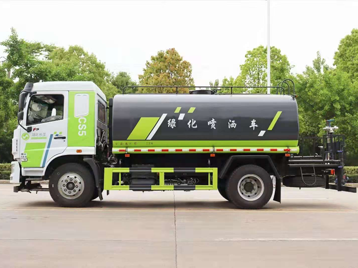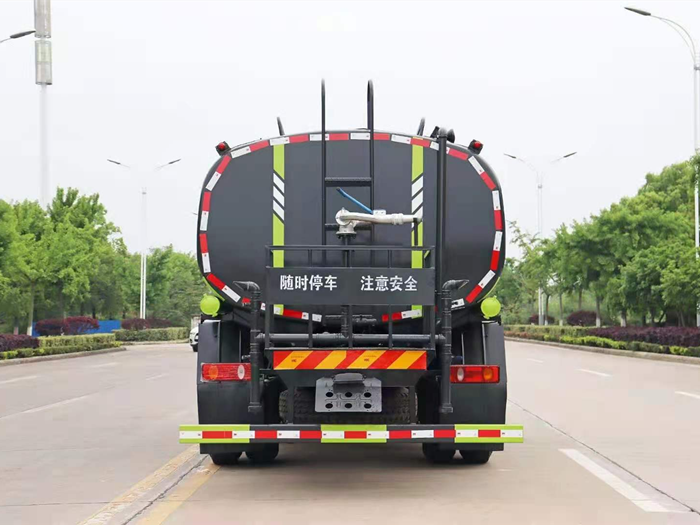 改裝配置:罐體用4MM碳鋼板制作,罐內隔板具有防波作用,以減低汽車行駛時罐體液體的沖擊。整車帶一個專用灑水泵(垂直最大吸程6米),灑水寬度14米,射程28米。多功能灑水車配備2個前沖(噴)(能將路面泥巴、塵土、垃圾沖干凈);2個后灑(能均勻地將水灑在路面,一次灑水寬度14米)、2個側噴(花灑)(能均勻地將路旁綠化帶澆灌)、帶1個后工作平臺,平臺上安裝1個綠化灑水高炮(灑水炮可全方位旋轉,可連續(xù)調成直沖狀、大雨、小雨、毛毛雨,霧狀可調節(jié)沖洗高大樹木),引水時間<5min,流量90m3/h。帶1個消防接頭,帶1個自流閥,1個過濾裝置、人性化爬梯及側防護欄,安裝灑水音樂喇叭。