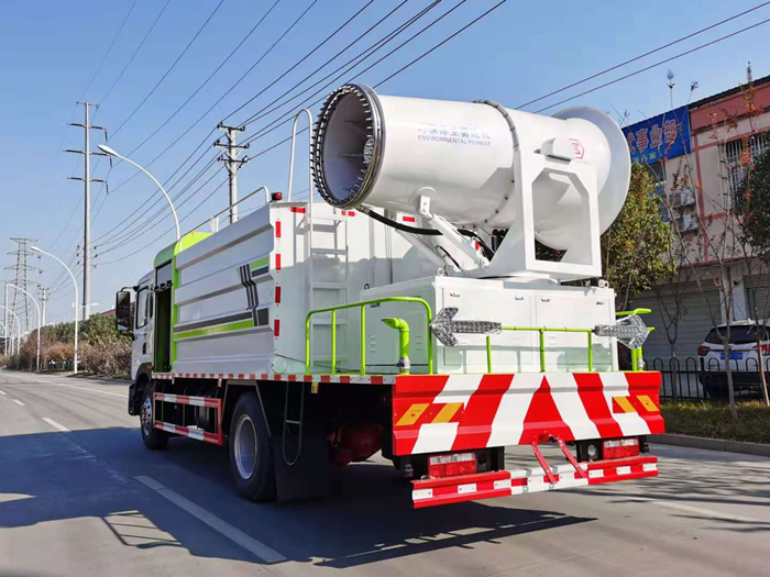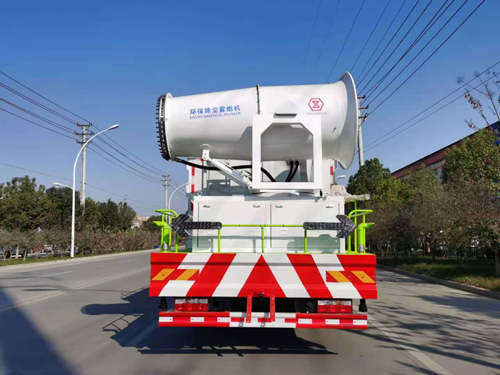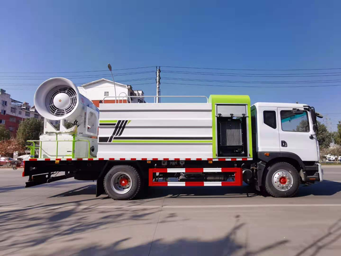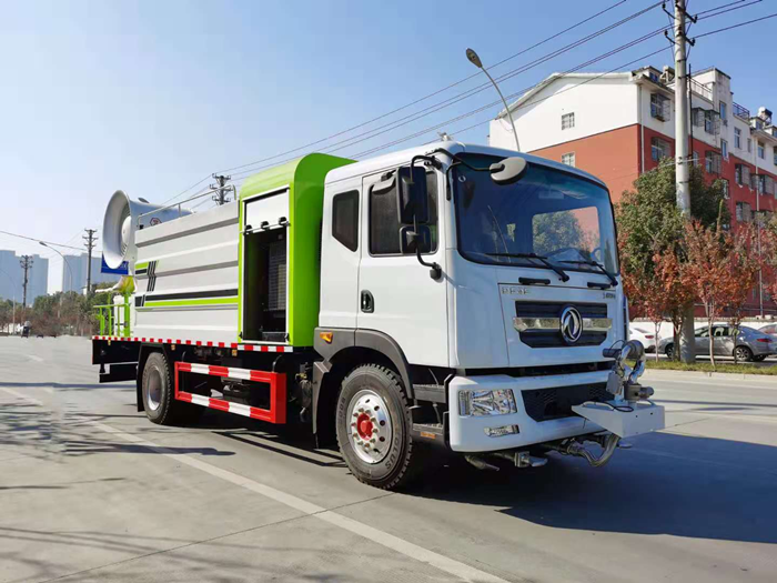 罐體滿載容積11立方,前噴,后灑,側(cè)噴,高炮,帶工作平臺(tái),(所有功能可選裝自動(dòng)控制)平臺(tái)加裝60米風(fēng)筒式霧炮,配備柴油發(fā)電機(jī)組,霧炮可作為噴射農(nóng)藥,抑塵功能。