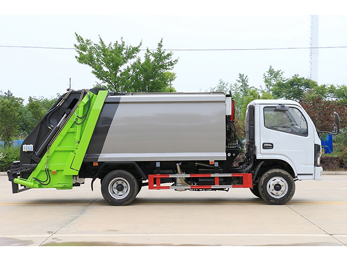 廂體材料為6mm武鋼優(yōu)質(zhì)碳鋼,廂體可選方型或方圓型,容積為6立方米。主要分為裝料機(jī)構(gòu)、壓縮機(jī)構(gòu)、卸料機(jī)構(gòu)和液壓機(jī)構(gòu)。裝料機(jī)構(gòu)由支架、連桿機(jī)構(gòu)、凸輪、掛鉤等組成,在油缸作用下,將垃圾桶內(nèi)的垃圾自動翻轉(zhuǎn)倒入料斗內(nèi)。新工藝有9支液壓缸制動,不帶副壓板,液壓**操作系統(tǒng)為電動**和手動**。壓縮箱體下部設(shè)有污水收集箱,壓縮垃圾內(nèi)的污水,液態(tài)污物可流入其中,卸垃圾時可排出,減少二次污染。