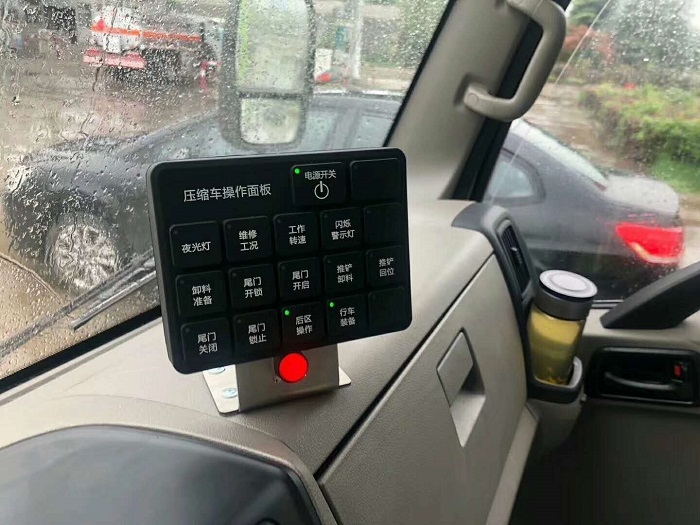 作業(yè)**盒分別安裝在駕駛室內(nèi)和車(chē)尾,駕駛室內(nèi)的作業(yè)**盒可**推擠卸料和選擇操作模式(如自動(dòng)或手動(dòng)),車(chē)尾的作業(yè)**盒則**壓填機(jī)構(gòu)和翻桶機(jī)構(gòu)的作業(yè),使用操作十分方便。特別是在垃圾填埋場(chǎng),作業(yè)人員無(wú)須下車(chē)即可完成卸料和污水排放。