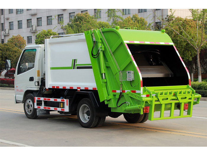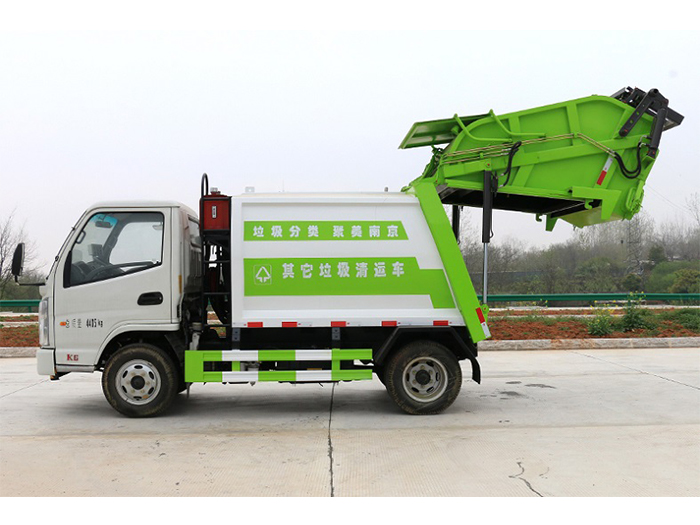 采用Q345高強(qiáng)度錳鋼板制作,廂體容積:4立方米,可裝10立方散裝垃圾,壓縮倍率2.5-3倍,壓縮后生活垃圾密度從0.36變?yōu)?.95以上,合肥長源快速液壓泵,大流量快速手自一體多路換向閥,西門子PLC電控系統(tǒng),卸料時帶一鍵循環(huán)系統(tǒng),司機(jī)不下車可完成卸料工作,尾部 帶密封橡膠墊,可防污水滴漏二次污染。尾部選裝翻轉(zhuǎn)大落地斗裝置,選裝遙控器操作,讓你遠(yuǎn)離灰塵,干干凈凈工作。 國六藍(lán)牌凱馬4方壓縮垃圾車可選配后掛桶翻轉(zhuǎn)機(jī)構(gòu),三角斗,全密封斗,可掛國標(biāo)240升垃圾桶或660升垃圾桶。