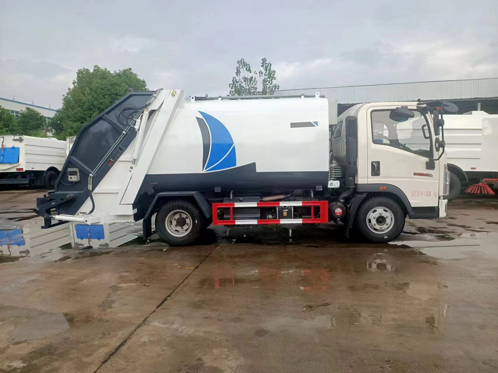 后裝卸式垃圾車又稱壓縮式垃圾車(以下簡稱垃圾車)是用于城鎮(zhèn)袋裝、桶裝、散裝生活垃圾物的收集、運(yùn)輸、卸料作業(yè)的專用車輛。垃圾被刮滑機(jī)構(gòu)刮進(jìn)車廂,通過與推板之間的擠箱,使垃圾較高密度、較均勻地分布在車箱內(nèi),直至裝滿為止;該垃圾車的收運(yùn)方式是目前世界上廣泛采用的垃圾收運(yùn)方式,其專用裝置的功能均以汽車發(fā)動機(jī)為動力,通過液壓機(jī)構(gòu)手動或電控來實現(xiàn)。車輛的箱體、裝填器又稱斗體及污水箱均采用優(yōu)質(zhì)炭鋼板全密封焊接結(jié)構(gòu),具有強(qiáng)度高、重量輕、不產(chǎn)生二次污染等優(yōu)點。