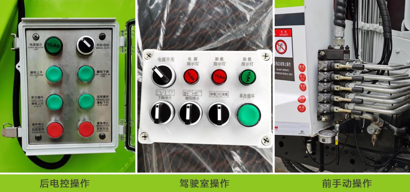 控制系統(tǒng):駕駛室內(nèi)操作和前后液、電一體控制,并采用進(jìn)口PLC(可編程序控制器)集成控制,通過設(shè)置邏輯回路保證各操作指令按順序執(zhí)行,實現(xiàn)滑板和刮板自動循環(huán)工作。