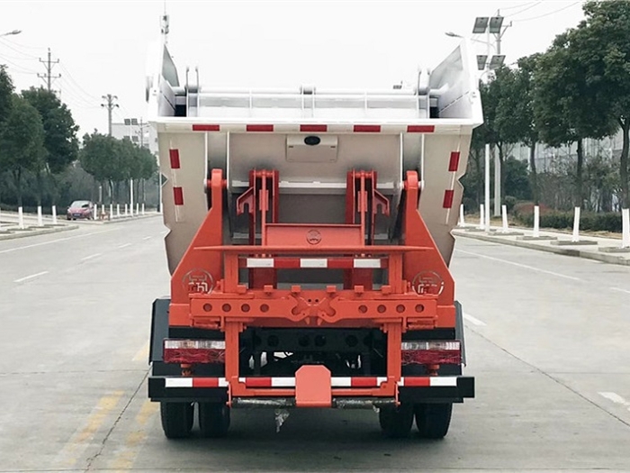 3、壓縮裝置:采用滑板及刮板壓縮裝置,通過滑板及刮板對(duì)垃圾進(jìn)行壓縮,極大的提高垃圾裝載量,降低運(yùn)營成本。